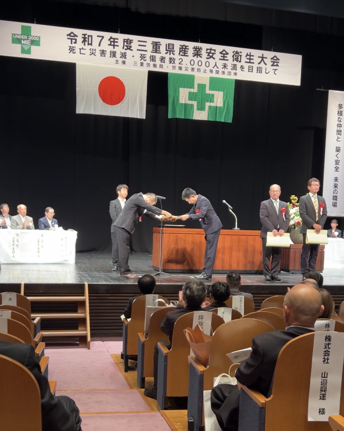 三重労働局より「安全衛生努力賞」をいただきました✨